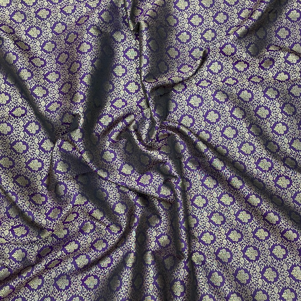 | Body design | Purple Blue With Gold Zari And Silk Thread Grand Floral Design |