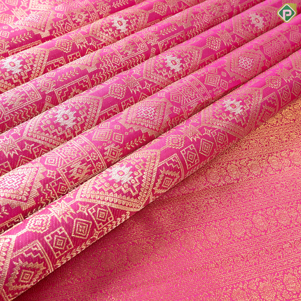 Body design Rani Pink With Gold Zari Multi Shaped Self Designed Square Butta Full Body Design