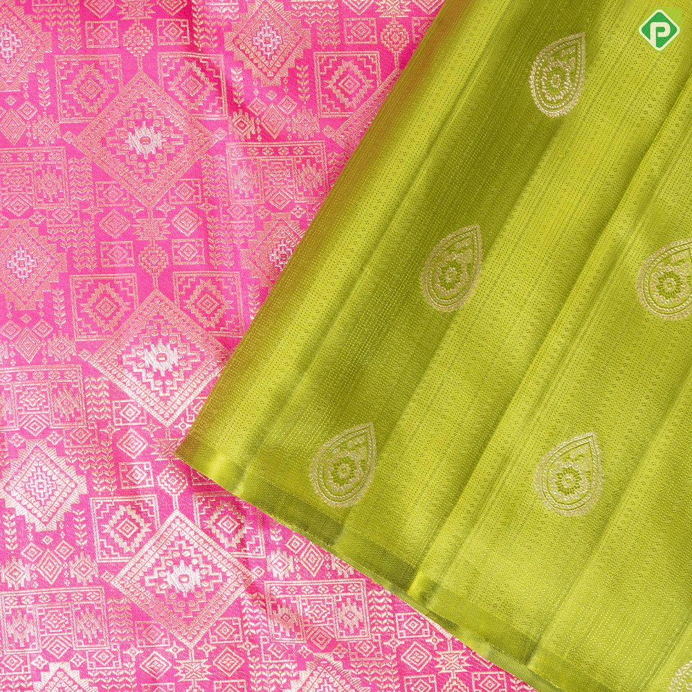 Rani Pink With Borderless Contrast Parrot Green Edge Design Bridal Silk Saree