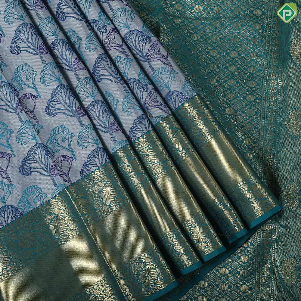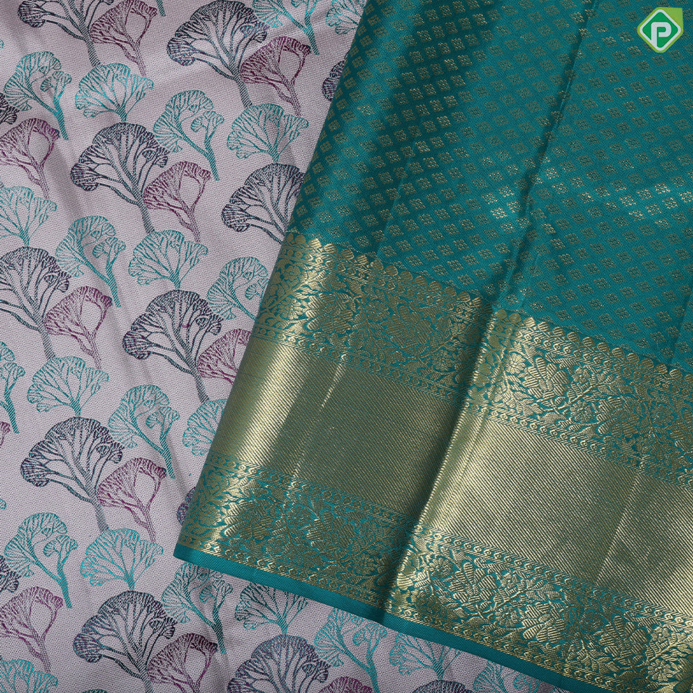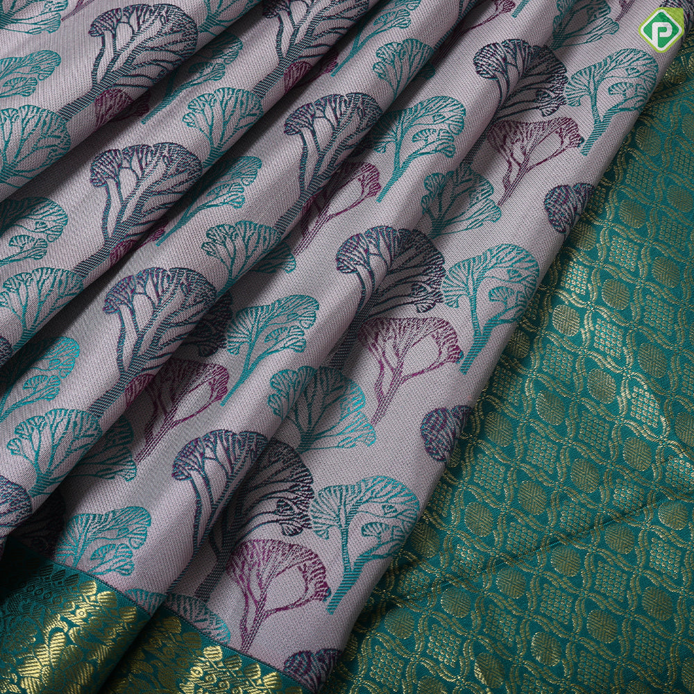| Border design | Peacock Green With Gold Zari Floral Retta Pet Border |