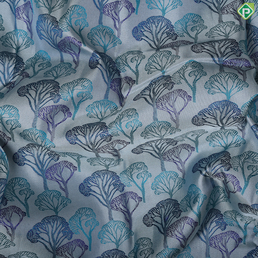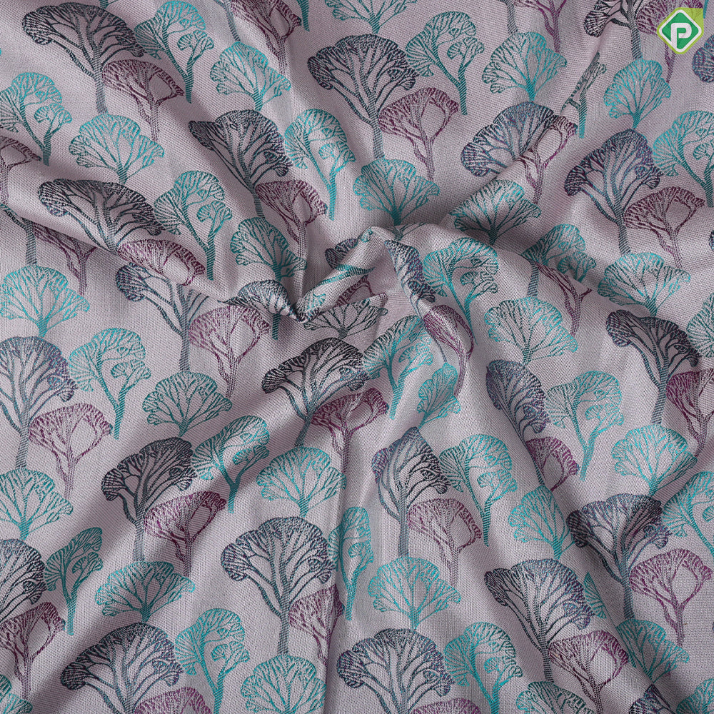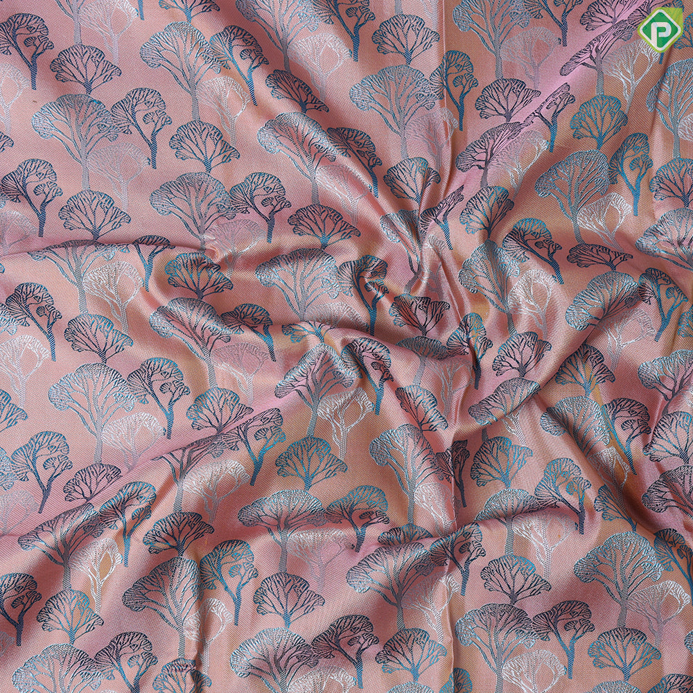 | Body design | Orangish Pink With Contrast Blue And Green Shade Silk Thread Forest Trees Effect Design Weaved |