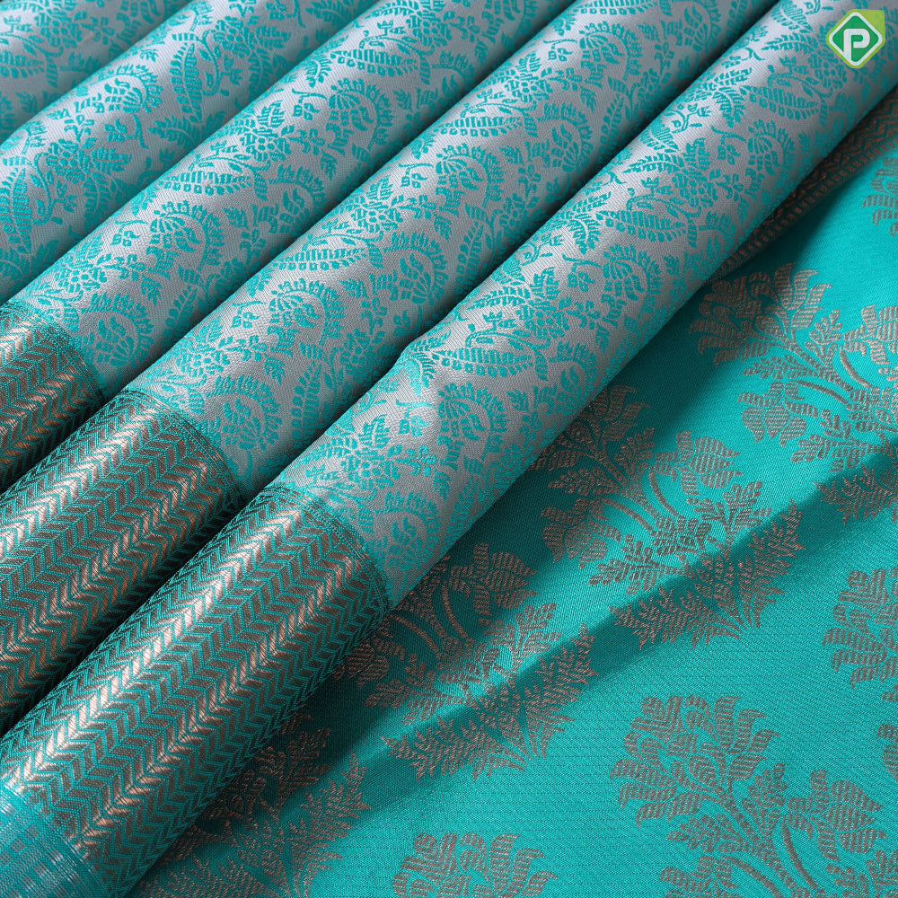 | Border design | Rexona Green With Silver Zari Half Copper Zari Small Lines Border |