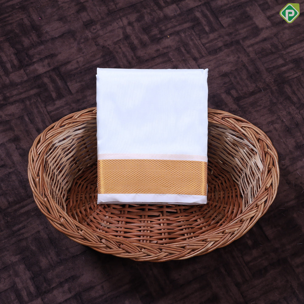 White Gold Zari Border 8 Muzham 100Kuligai Asha Silk Dhoti