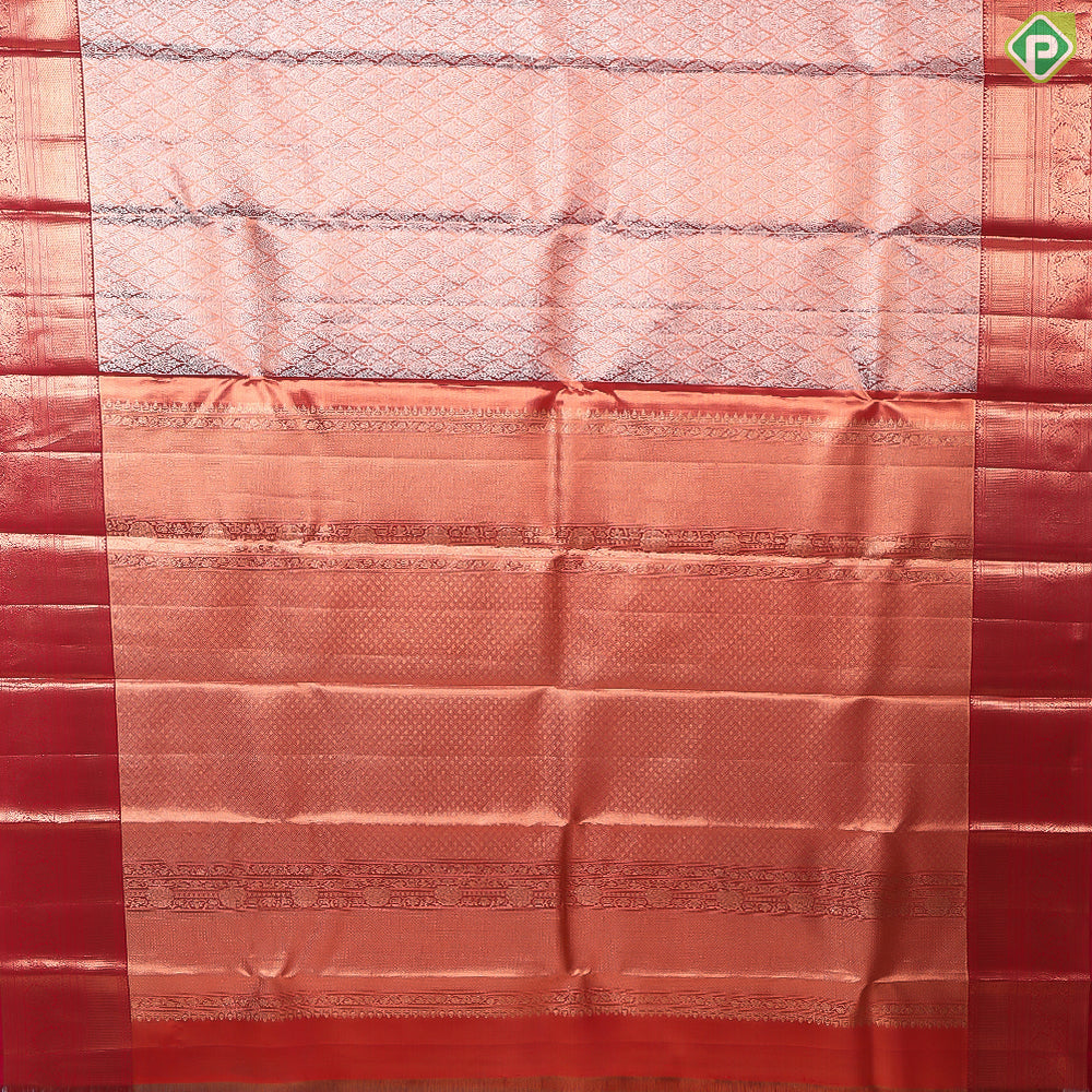 Magenta Copper With Silver Zari Fancy Flower Organized Rangoli Design Border Grand Tissue Silk Saree