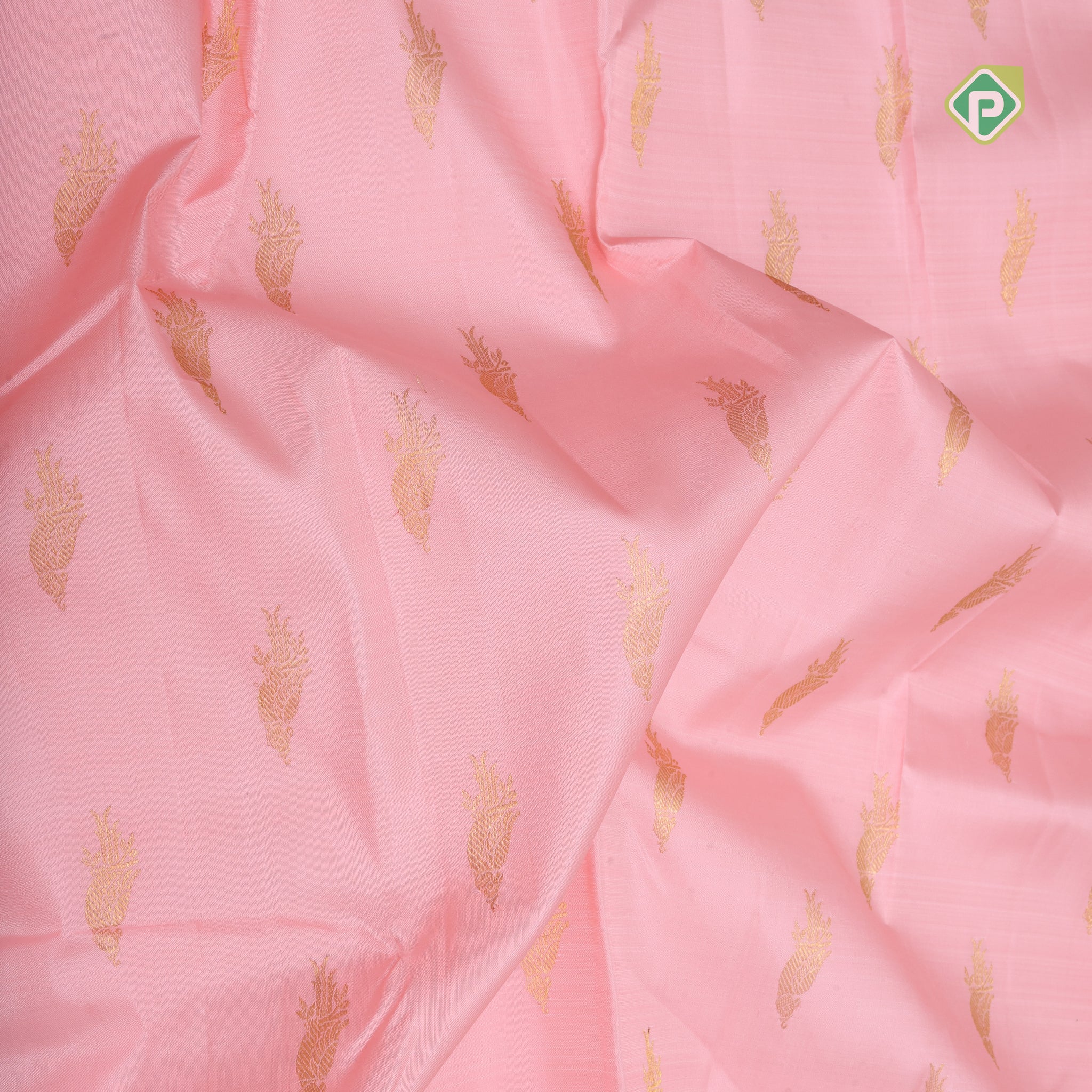 Baby pink gold zari parrot butta design self color gold zari gatti border bridal silk saree