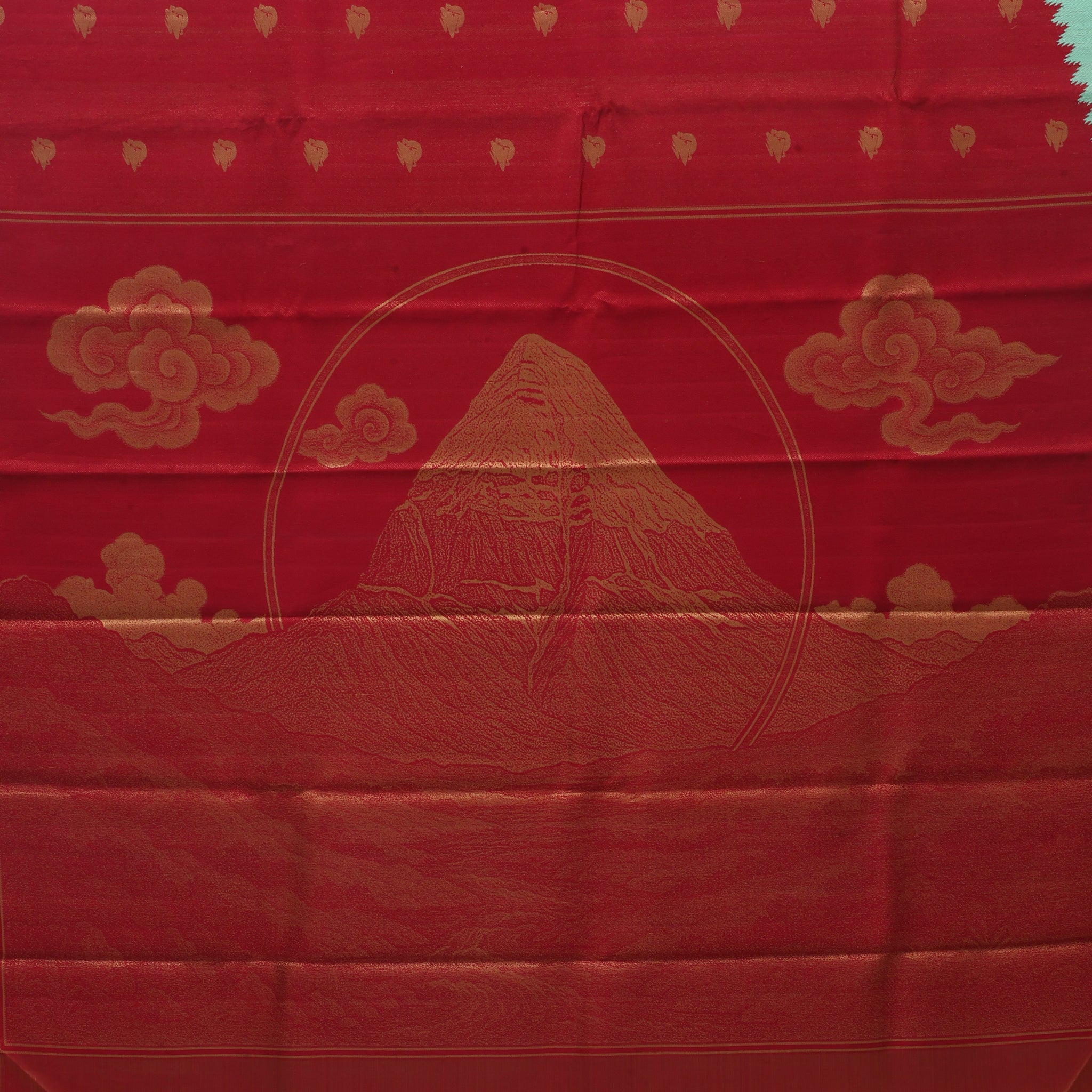 Body design Crimson red gold zari Kailash hills design