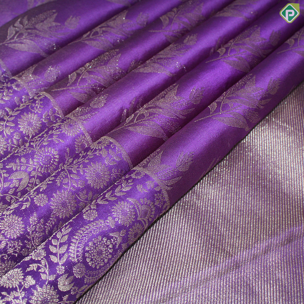 This exquisite magenta tissue silk saree features intricate silver zari work with elegant flower motifs, perfectly complemented by a self-colored border. Its traditional craftsmanship highlights rich heritage weaving techniques, making it an ideal choice for festive occasions and celebrations. The lightweight tissue fabric ensures graceful draping and comfort, while the detailed silver zari adds a touch of sophistication and timeless charm. Perfect for those seeking a blend of classic style and refined artistry.