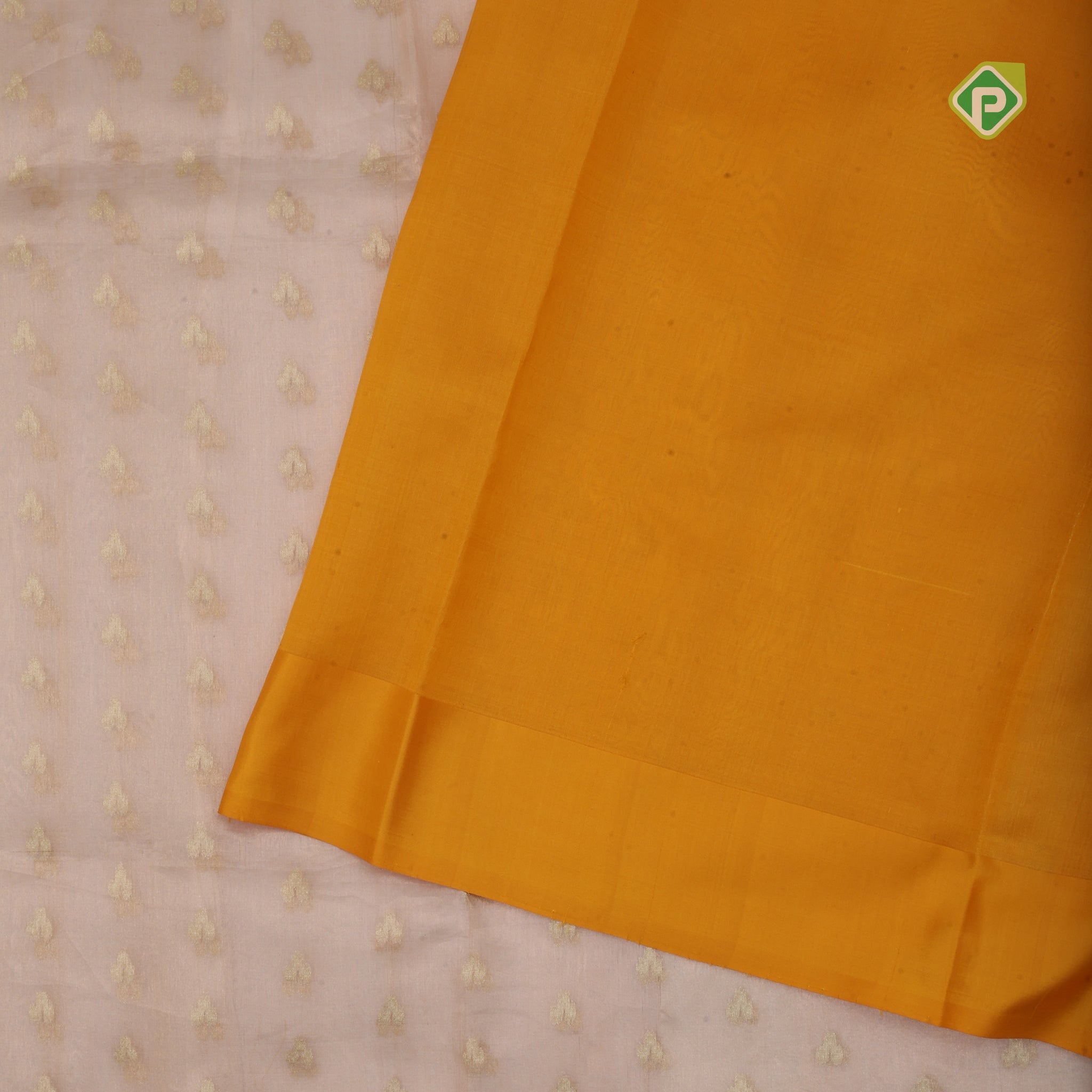 Body design Peach gold zari butta tissue design