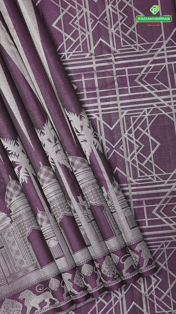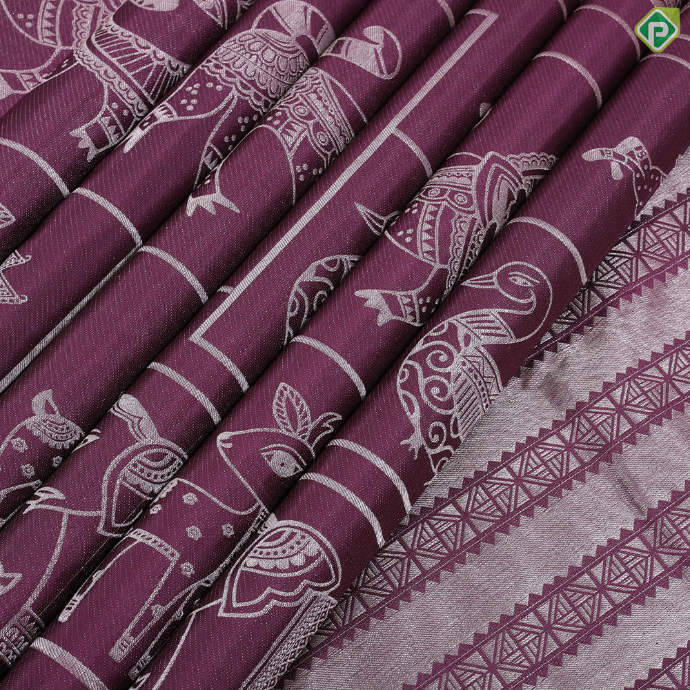 Wine color animals pattern weaved double wear shimmery borderless trendy designer silk saree