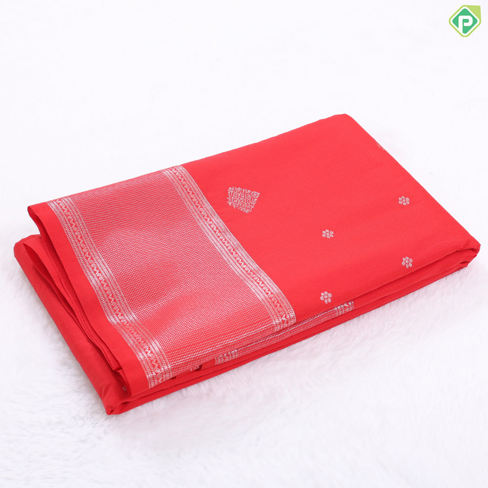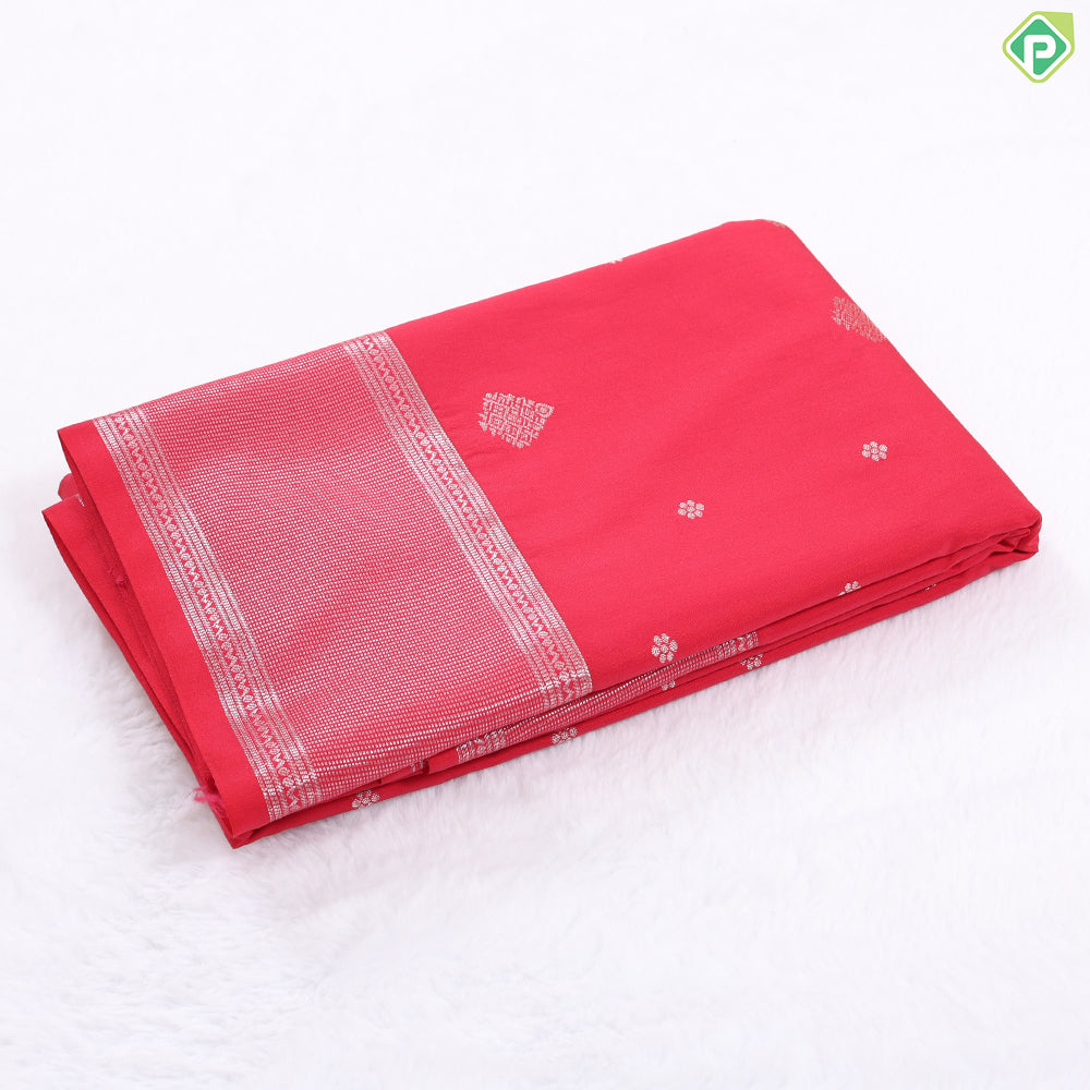 This exquisite indigo blue art silk saree features a full-body design adorned with silver and gold zari rudraksham and thilagam buttas, creating a rich, traditional aesthetic. The self-colored body is elegantly complemented by a silver and gold zari striped border, enhancing its regal appeal. Perfect as a gift, this saree blends timeless craftsmanship with luxurious textures, ideal for special occasions and festive celebrations.