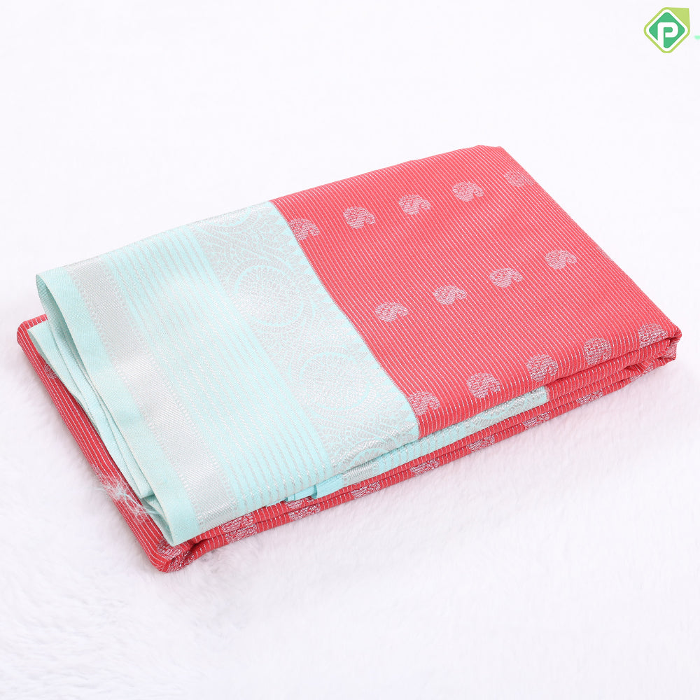 Emerald green with vairaoosi and butta design cream border Art silk gift saree
