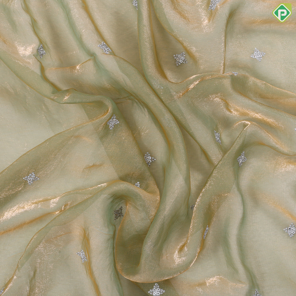 | Body design | Mint green tissue effect diamond embroidered butta design |
