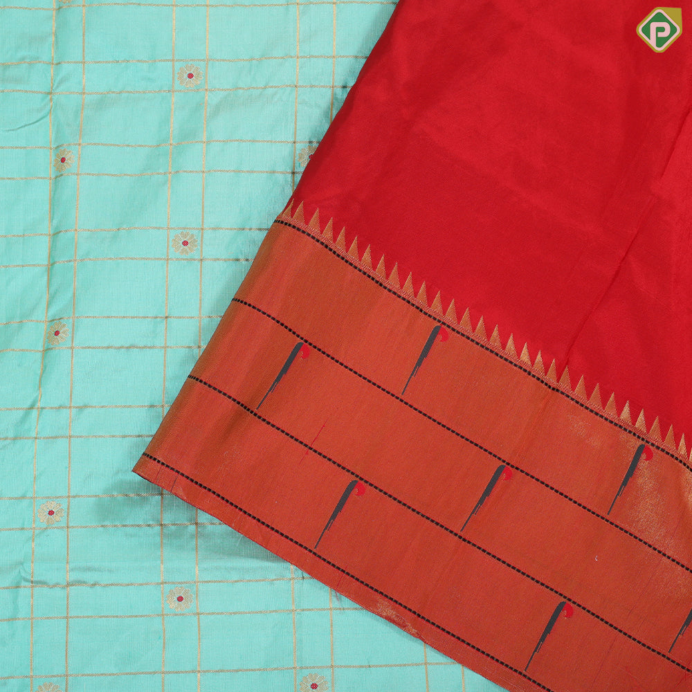 Pista green gold zari double checkered design orange pythonic border banaras silk saree