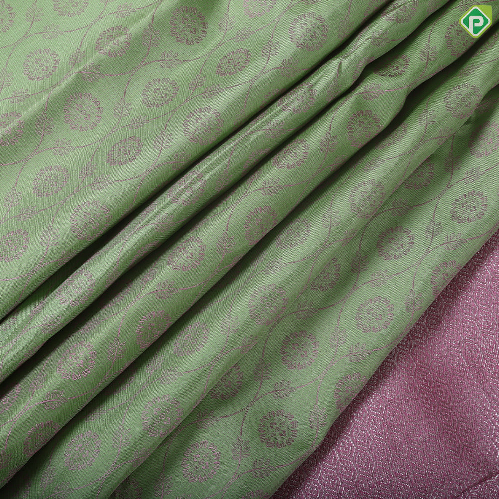 Pista green pink grand floral thread work design self silver zari meena work border trendy silk saree