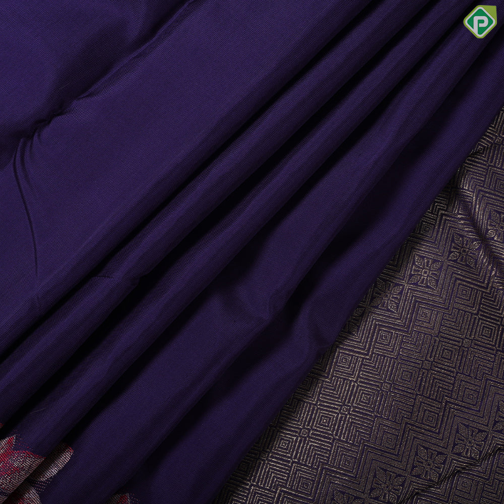 Purple Blue plain weaved design self colorful leaf design border trendy silk saree