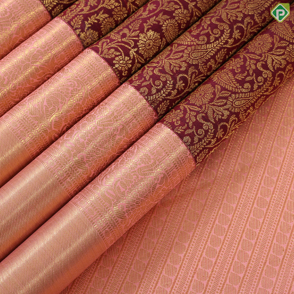 Border design | Contrast baby pink with gold zari fancy bavanji Border |