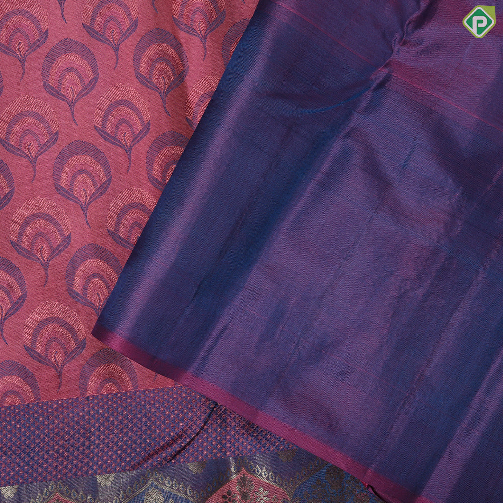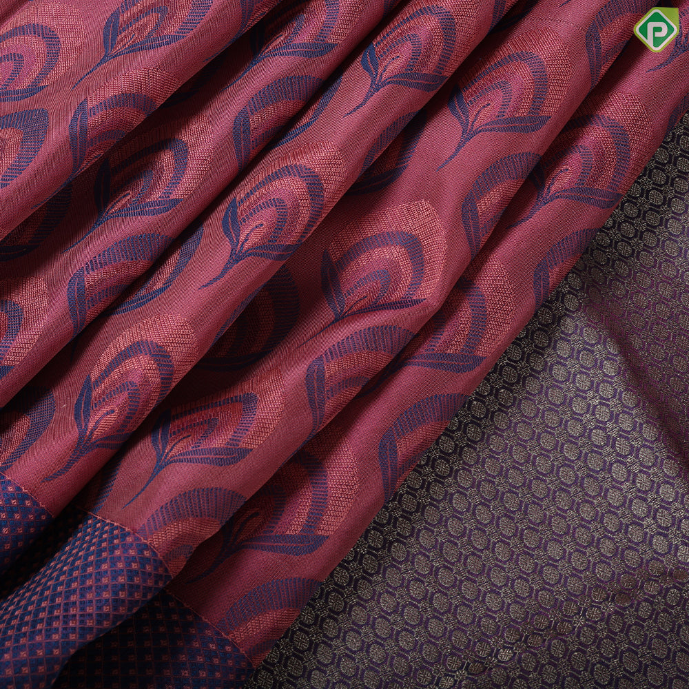 Rani Pink Peacock feather thread work design self gold zari plant meena work border trendy silk saree